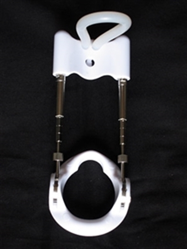 箱から取り出してみて、全て組み立ててみるとこういった感じになります。下のリングからペニスを通し、上のシリコンチューブに亀頭を引っ掛けるんですね。こうなると、まるっきりアンドロペニスですね。左右のロッドはペニスの角度に合わせて自由に角度も動くようになっています。